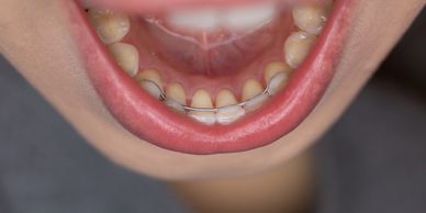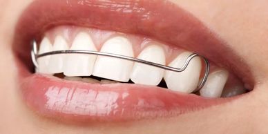 This permanent devise consists of wire or small metallic chain, bonded to the back of your teeth to keep them in place. Caution regarding certain foods is necessary and special attention is required to ensure proper hygiene is maintained to prevent decay and periodontitis.